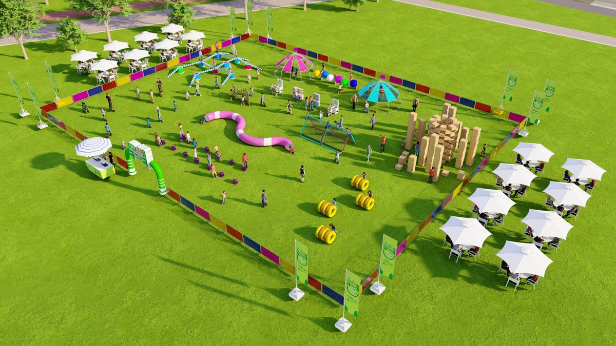 가족이 함께 놀 수 있는 장애물 통과 놀이기구, 아이들이 함께 그룹을 이뤄 하는 공놀이와 블록쌓기, 버블 만들기 등 신체활동이 가능한 가변형 놀이기구를 배치한다.