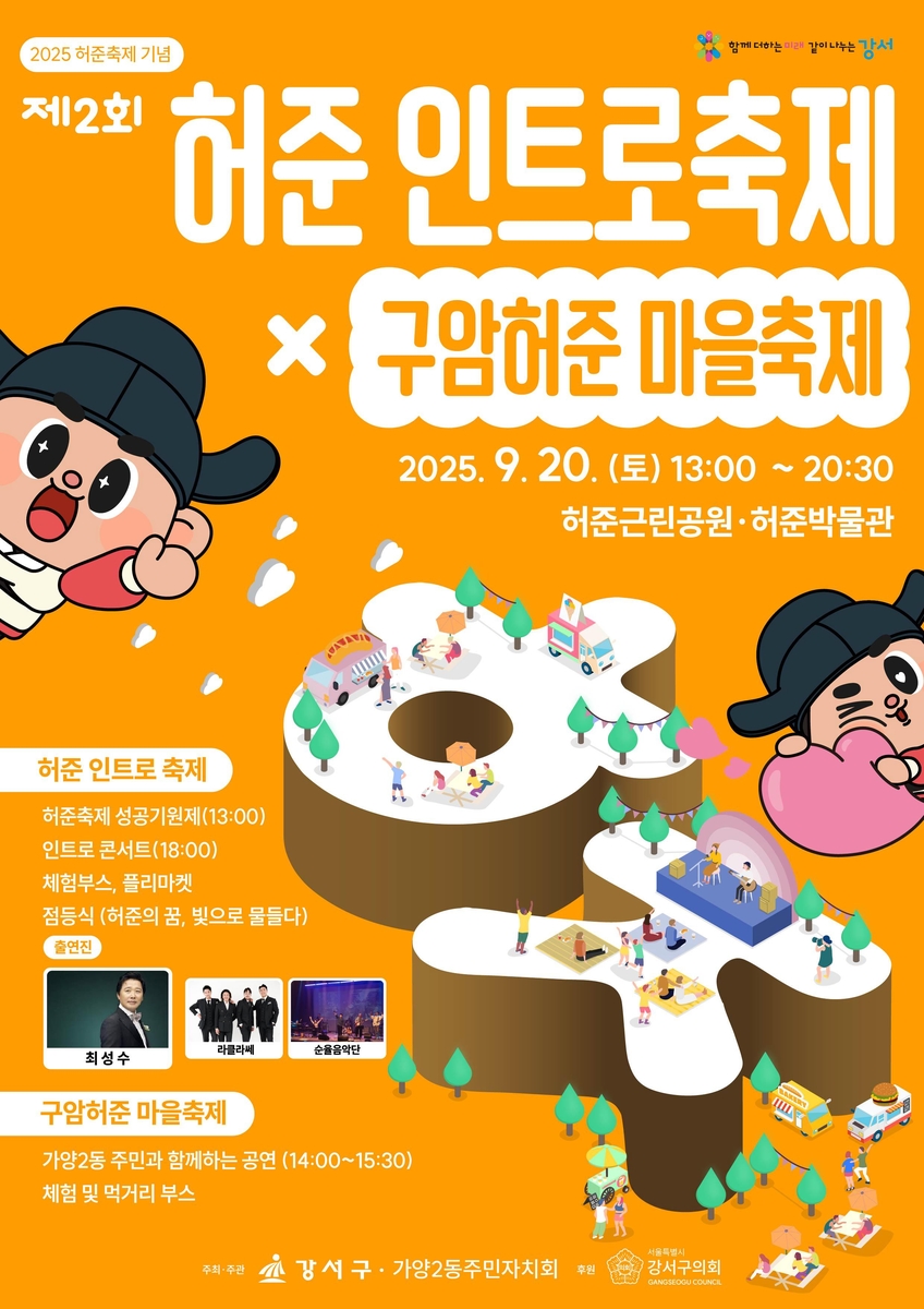(서울=연합뉴스) 정준영 기자 = 서울 강서구(구청장 진교훈)가 오는 20일 허준근린공원 일대에서 '제2회 허준인트로축제 × 구암허준마을축제'를 연다고 18일 밝혔다.