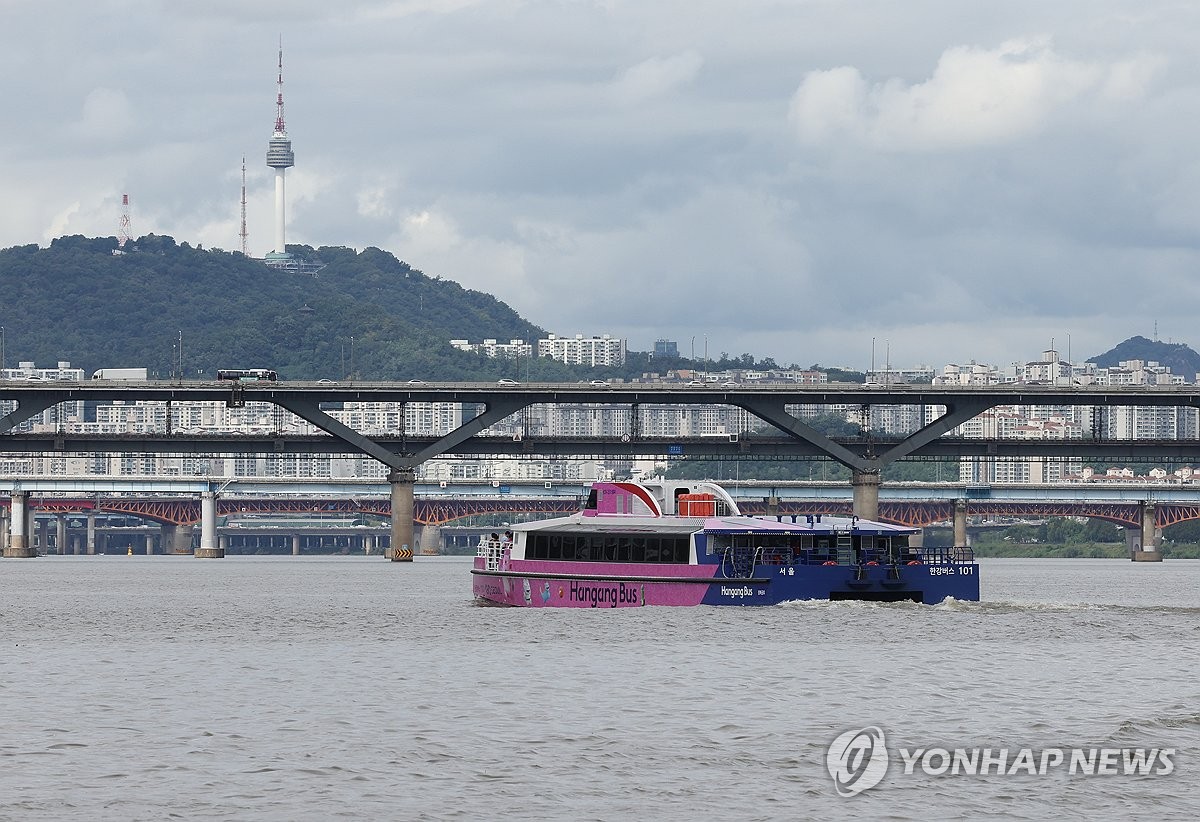 (서울=연합뉴스) 서명곤 기자 = 정식 운항을 시작한 한강버스가 18일 서울 송파구 잠실 선착장을 출발해 뚝섬 선착장으로 향하고 있다. 한강버스는 총 8척의 선박이 마곡-망원-여의도-옥수-압구정-뚝섬-잠실 7개 선착장, 28.9㎞를 오간다. 2025.9.18 seephoto@yna.co.kr