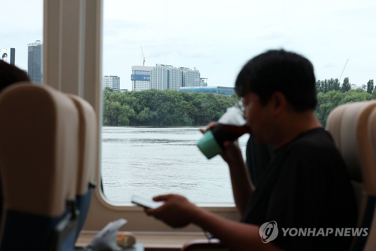 승객들 대부분은 창가 좌석 쪽에 앉은 뒤 통창을 통해 한강의 경치를 감상하고 사진을 찍었다.