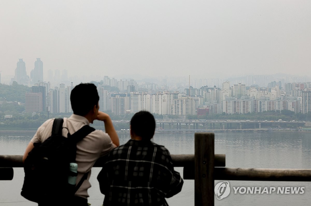 (서울=연합뉴스) 김성민 기자 = 구름이 많아 흐린 날씨를 보인 11일 서울 마포구 하늘공원에서 시민들이 한강변을 바라보고 있다. 2025.5.11 ksm7976@yna.co.kr